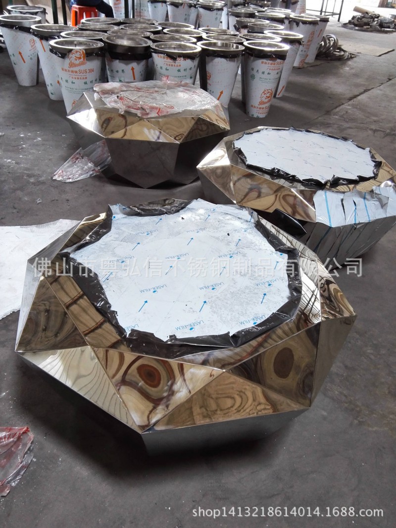 产品: 浏览次数:678镜面不锈钢茶几 钻石茶几 款式新颖 异形不锈钢家具加工