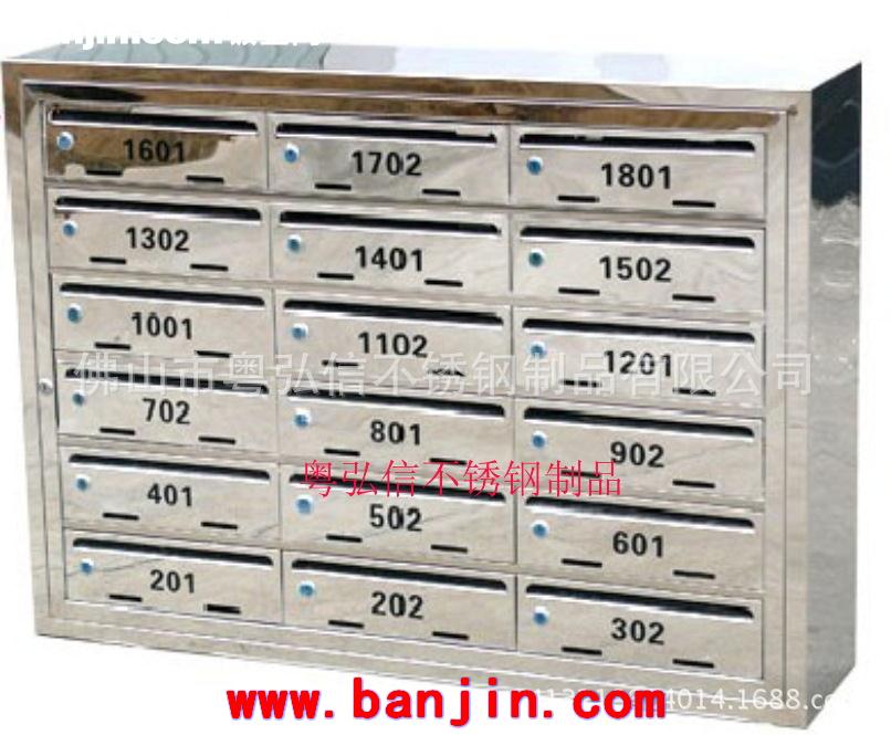 3.花园小区不锈钢宣传栏、草坪牌、房号牌、栋号牌、垃圾桶、楼梯扶手等等。该不锈钢信报箱主要制作材质为201202或者304不锈钢(表面为砂光板/拉丝板/8k镜面板/钛金板/玫瑰金/喷涂和2b板)等等。常规规格:120高*240宽*340深, 120高*340宽*240深。